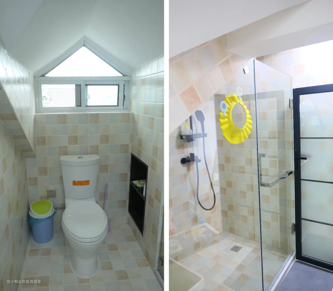 ▲将马桶从原来斜顶的低处移到了顶部高度1.8米的窗户下,再也不用担心撞到头。