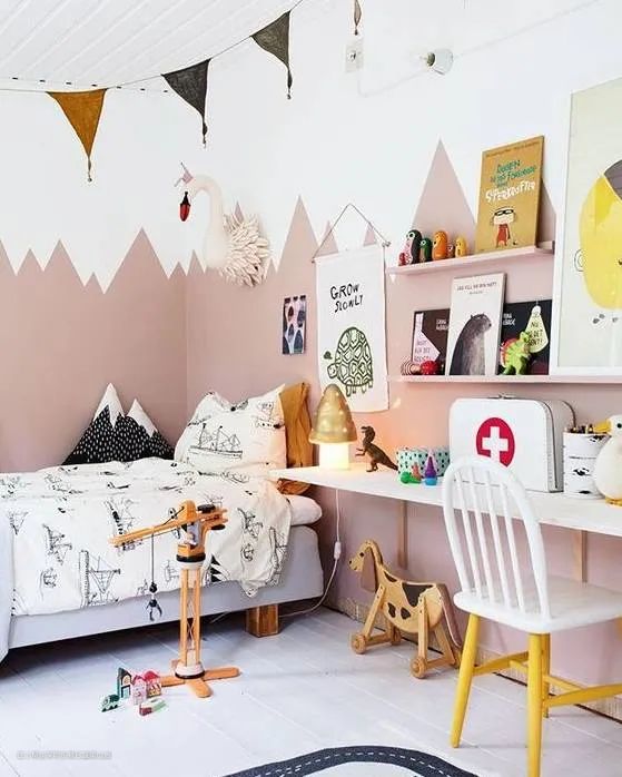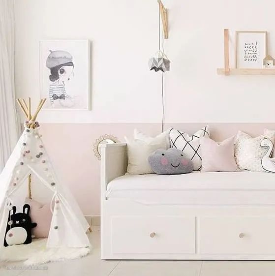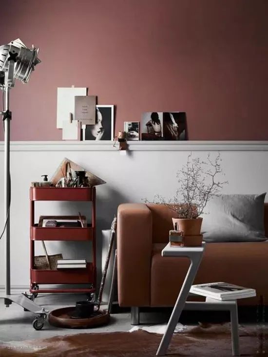 选半墙的少女粉色时,一定要选低饱和度、高纯度的粉色,才会搭配出高级感,否则就会让人无法直视、而且还容易想歪(此处请自行脑补),所以选对高贵的粉嫩色系很重要。