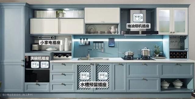 厨房插座设计不合理,插座不够用,用插线板的话,容易导致跳电、短路,带来安全隐患。