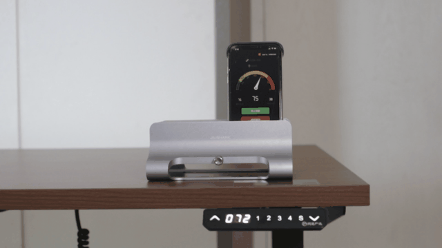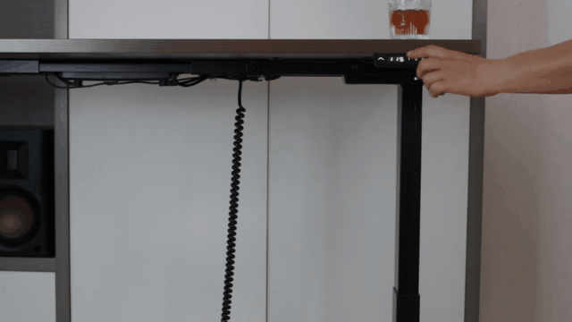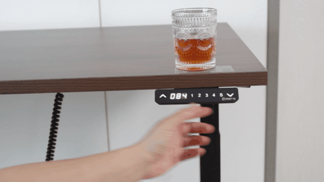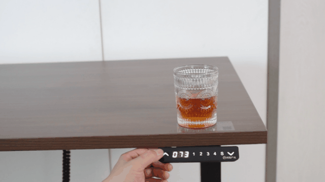 有4个高度记忆档位,一按就能升降到预置高度。用“S”按键储存好档位以后,我们就可以一键切换“站立位”和“坐位”: