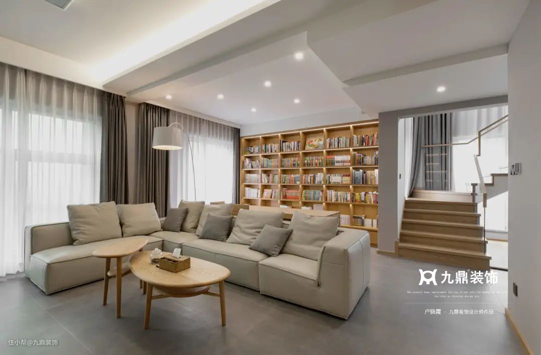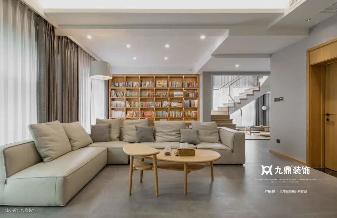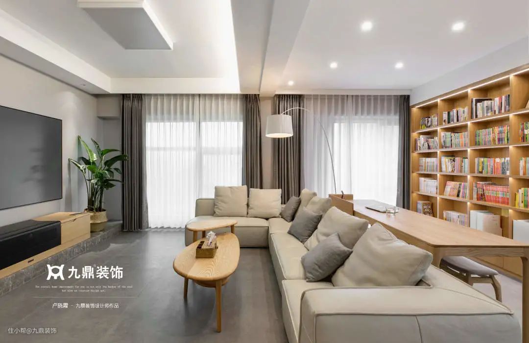 开放式设计极其灵活,打破传统思维后,将书房与客厅放在一起,既可以是工作区,也可以是亲子阅读区,不同功能融合出不同效果。