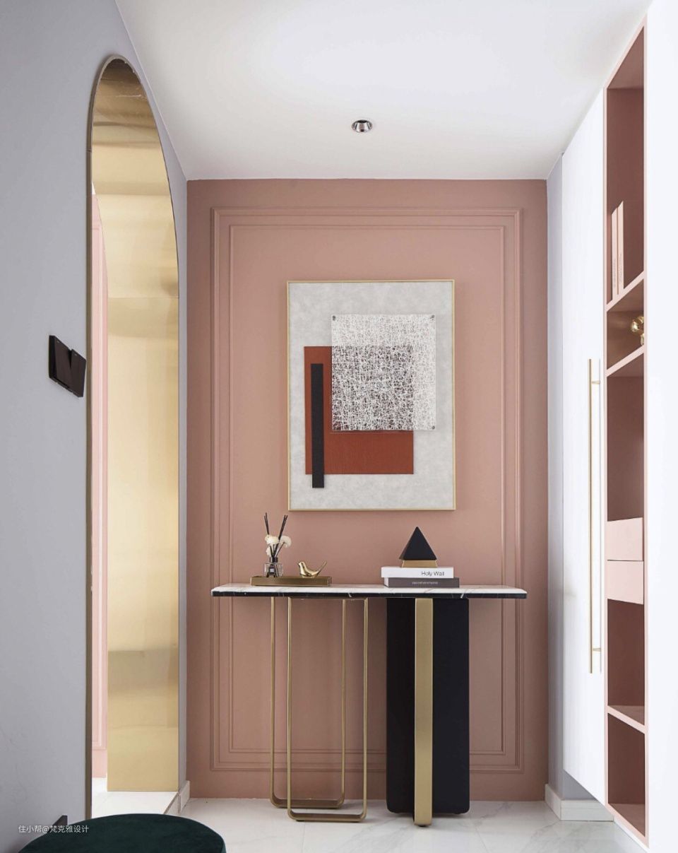 在传统的美式家庭中常见照片墙,虽然很温馨,但从视觉上看起来杂乱且老土。做照片墙需要杂乱中寻找规律搭配,让多变的照片有节奏统一,不适合大多数普通家庭。