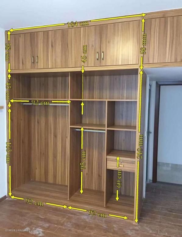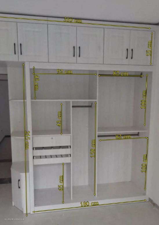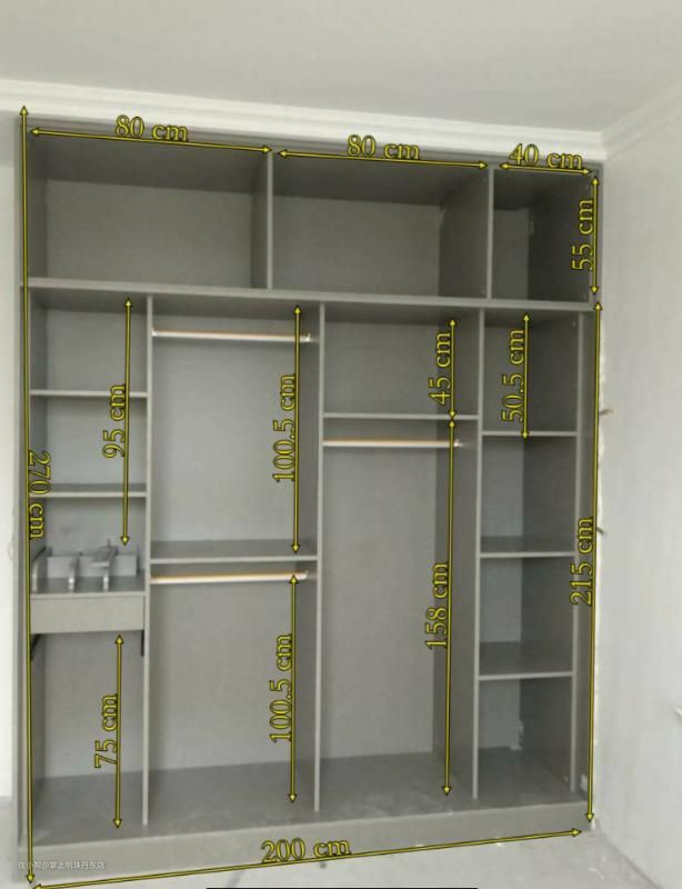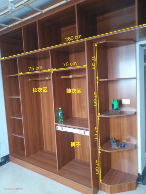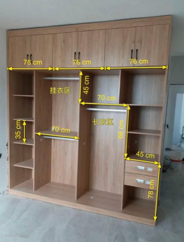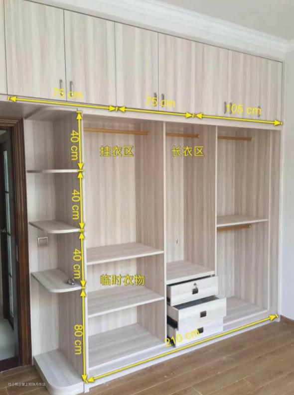 主要是根据自己家房子的顶部空间和可以做柜子的长度来决定衣柜的高度和长度。