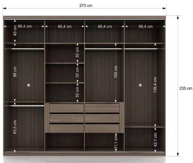在此需要说一下,并不是衣柜都是开放式的哦,只是为了大家更好的看到衣柜的尺寸,所以,现在分享的大多是没有柜门的衣柜啊。大家可以根据自己家需要的衣柜尺寸来参考看看,重点可以参考格子的尺寸以及长衣区和临时衣物区的尺寸。