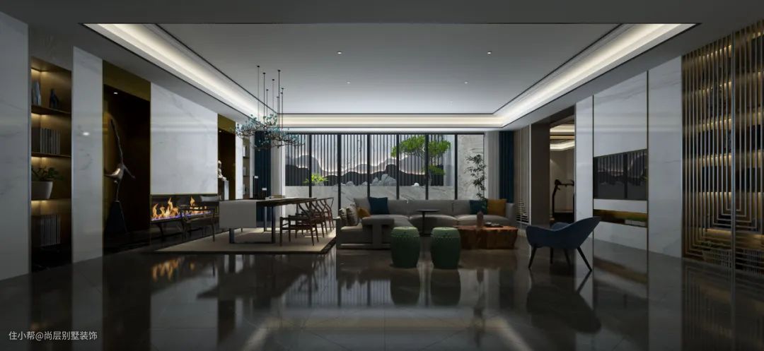 此外,地下一层还搭配半沉式的园林设计,不仅丰富了室内空间的空寂感,更将空间变得生机勃勃,又不失温馨,还连动了多个功能空间,完美地优化了地下空间的使用功能。