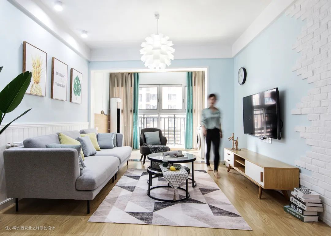 这样等到电视安装后,基本可以做到没有一点杂乱感,客厅看起来也更清爽。