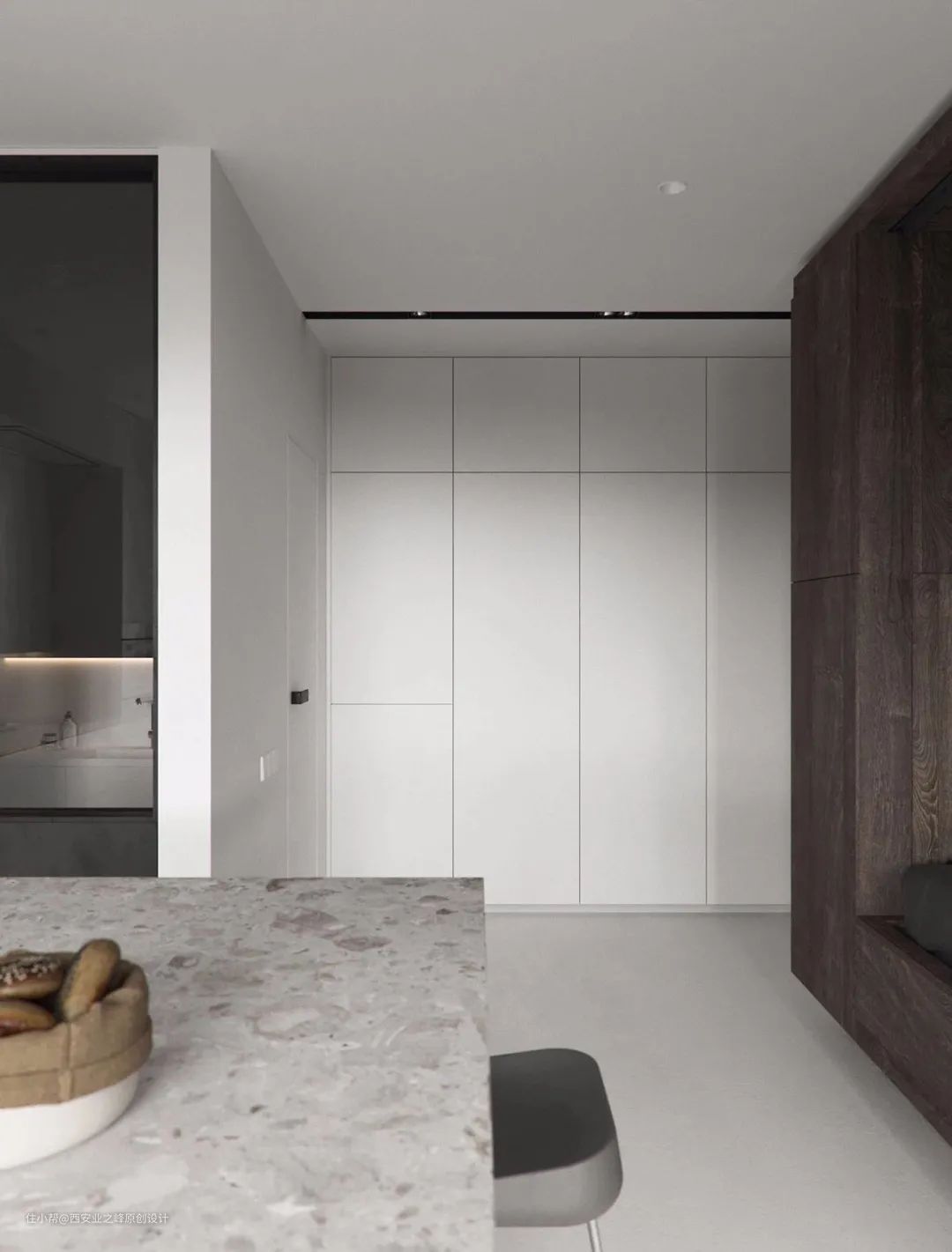 吊顶切忌做的太复杂,带有凹槽的吊顶还容易成为藏污纳垢的地方,所以直接无吊顶,不仅显层高,在家务清洁这一块会省事不少。