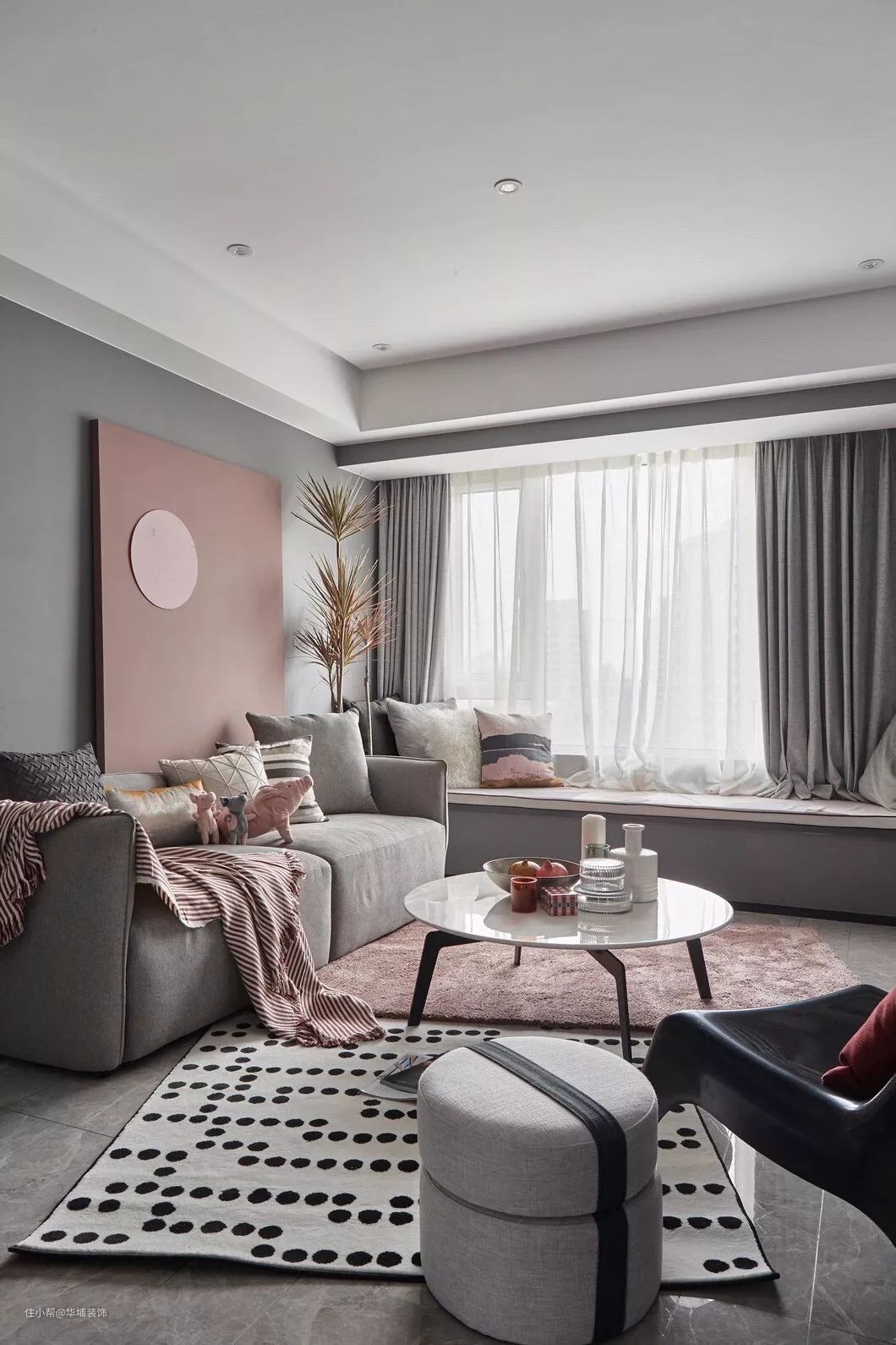 没阳台的客厅,有个飘窗,设计出来的生活也是非常的漂亮,你喜欢这种客厅吗?