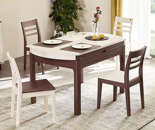 伸缩餐桌是可以拉伸的餐桌,也是小户型的佳选。空间不够宽敞的情况下,用餐时可以将其拉出,用完后推回去。可伸缩餐桌一般是放在固定地点,不会经常移动的。
