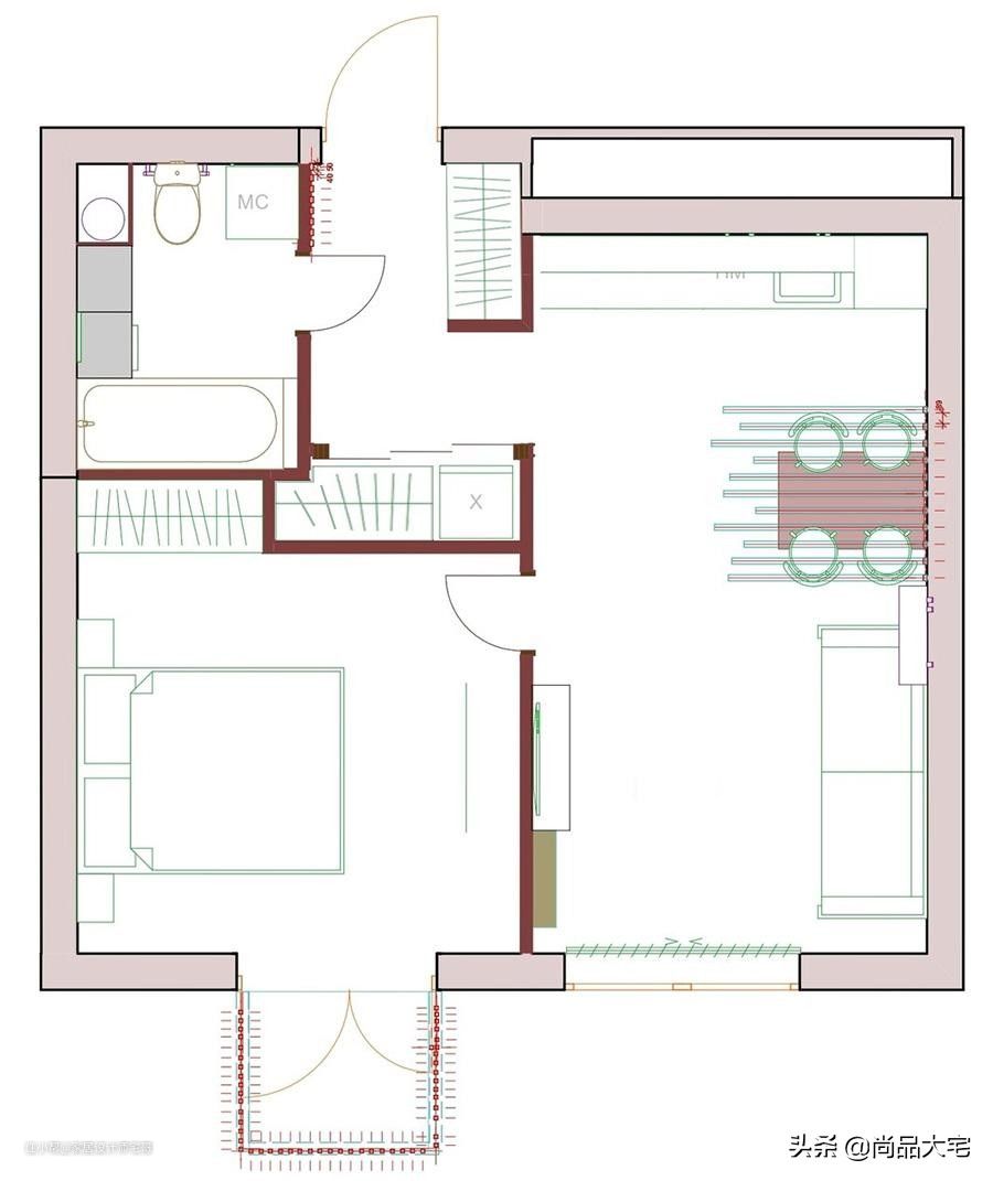 无论是国内国外,越来越多的中老年人由于生活观念和习惯的原因选择自己住,不和孩子居住在一起。本期案例给大家分享一套43㎡公寓(无公摊面积)的装修案例,业主也和大多数的中老年人一样,选择自己独居。该公寓位于莫斯科,业主是一位58岁的阿姨。她希望突出卧室,并营造一个带厨房的起居室。设计师给业主提供了几套平面布置方案,包括一套带双衣帽间的方案,最终业主选择了带三组衣柜的方案。