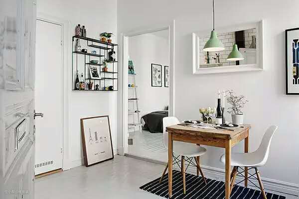 白墙+木地板,这个案例与我们大多数人家里的情况一致,那这里的餐桌是啥样的呢?