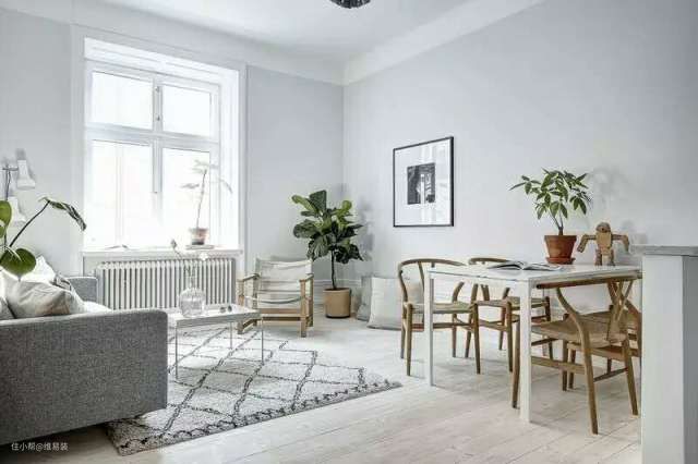 40%白色+40%原木色+20%黑色,这是北欧风最常见的形式,当然也是最保守的,最适合大多数对室内设计并没有太多研究的装修爱好者们的选择。