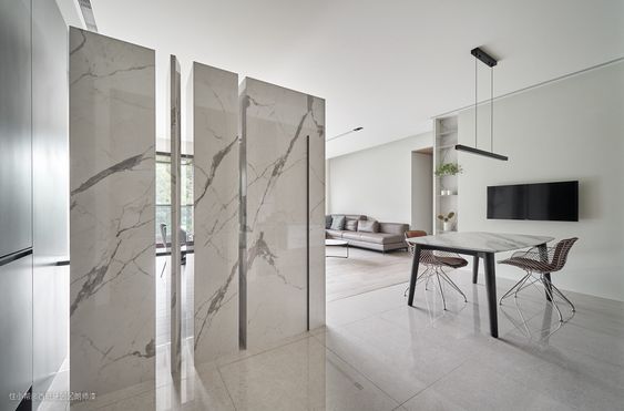 喜欢天然大理石温润手感,又不差钱的可以选择天然大理石。对于喜欢大理石纹理,也追求性价比,方便好打理的请选择微水泥大理石墙地一体效果。