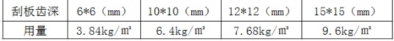 2、用齿型刮板将胶泥涂抹于基面上,然后握做齿型刮板使其齿边与基面形成45度角,把胶泥层梳理成均匀条状。