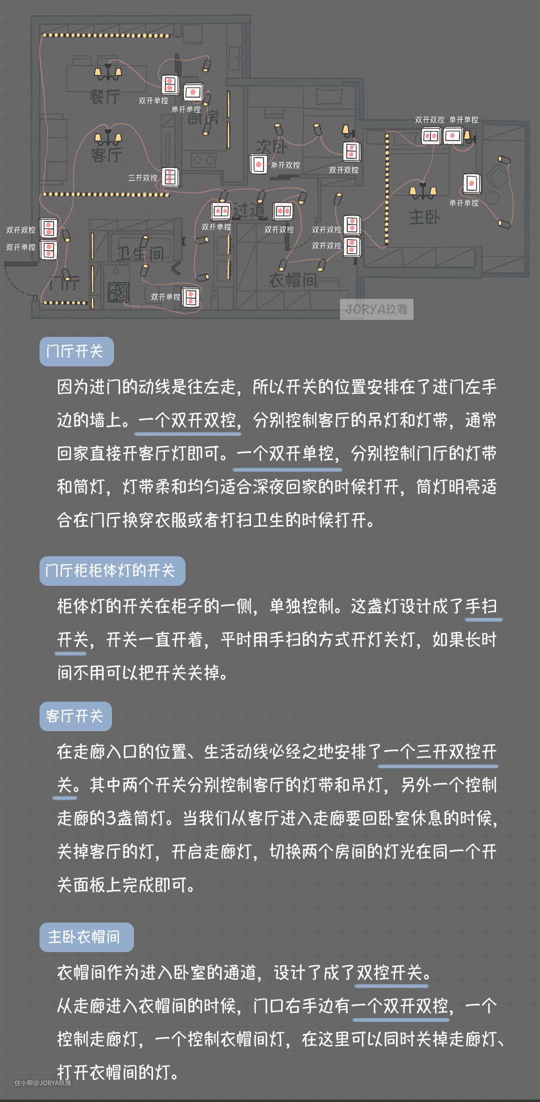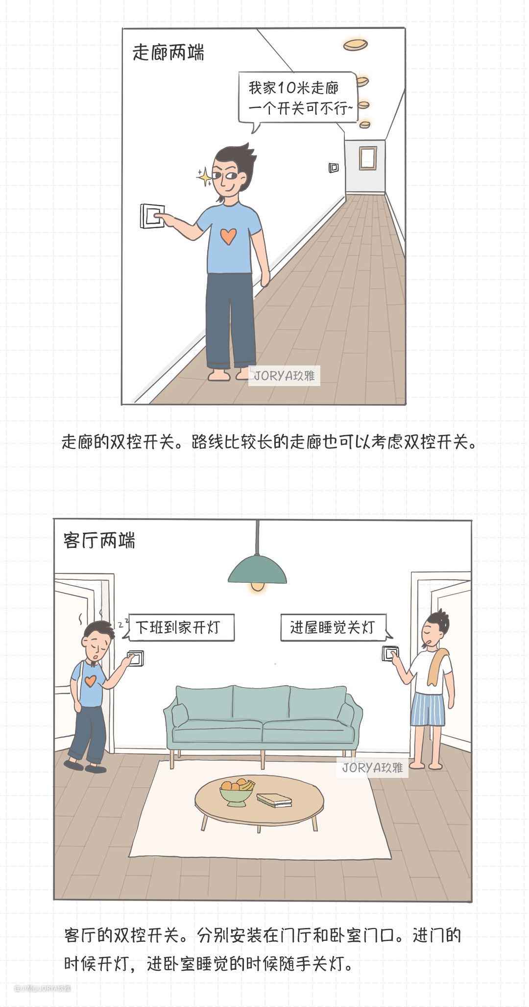 2、除了卧室之外,任何一个空间只要有进出两个口,都可以考虑双控开关。