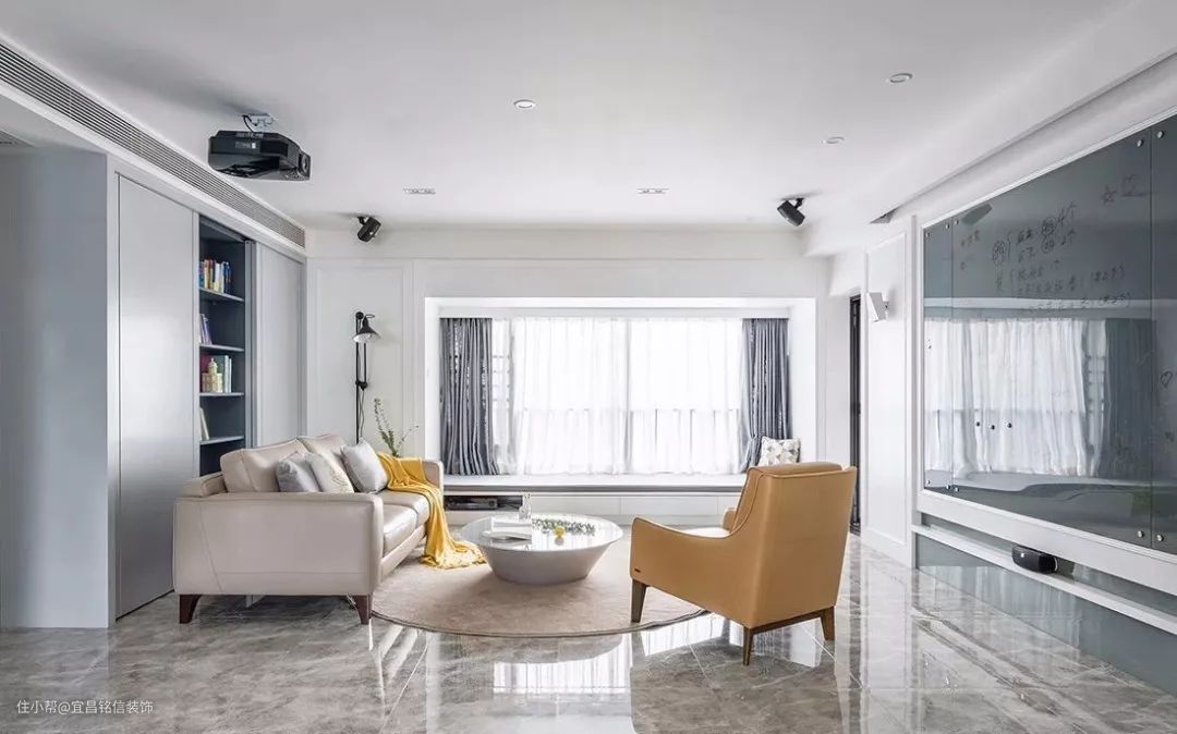▲ 把传统的电视背景墙设计为黑板墙,让孩子发挥创造力,用时尚又不占地的投影幕布取代电视,打造家庭影院