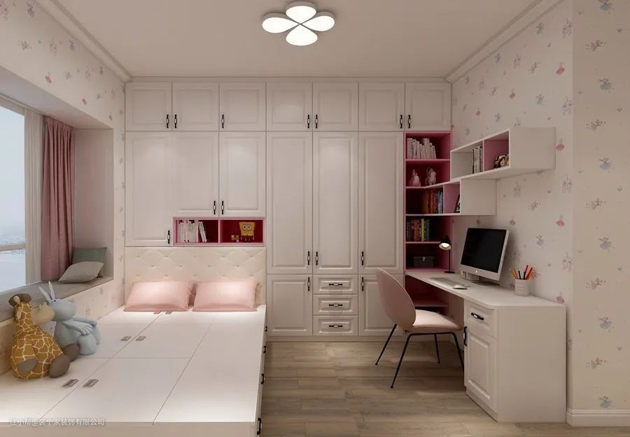 儿童房设计时也可以在书桌跟柜子上花些心思,让房间显得不会那么沉闷。