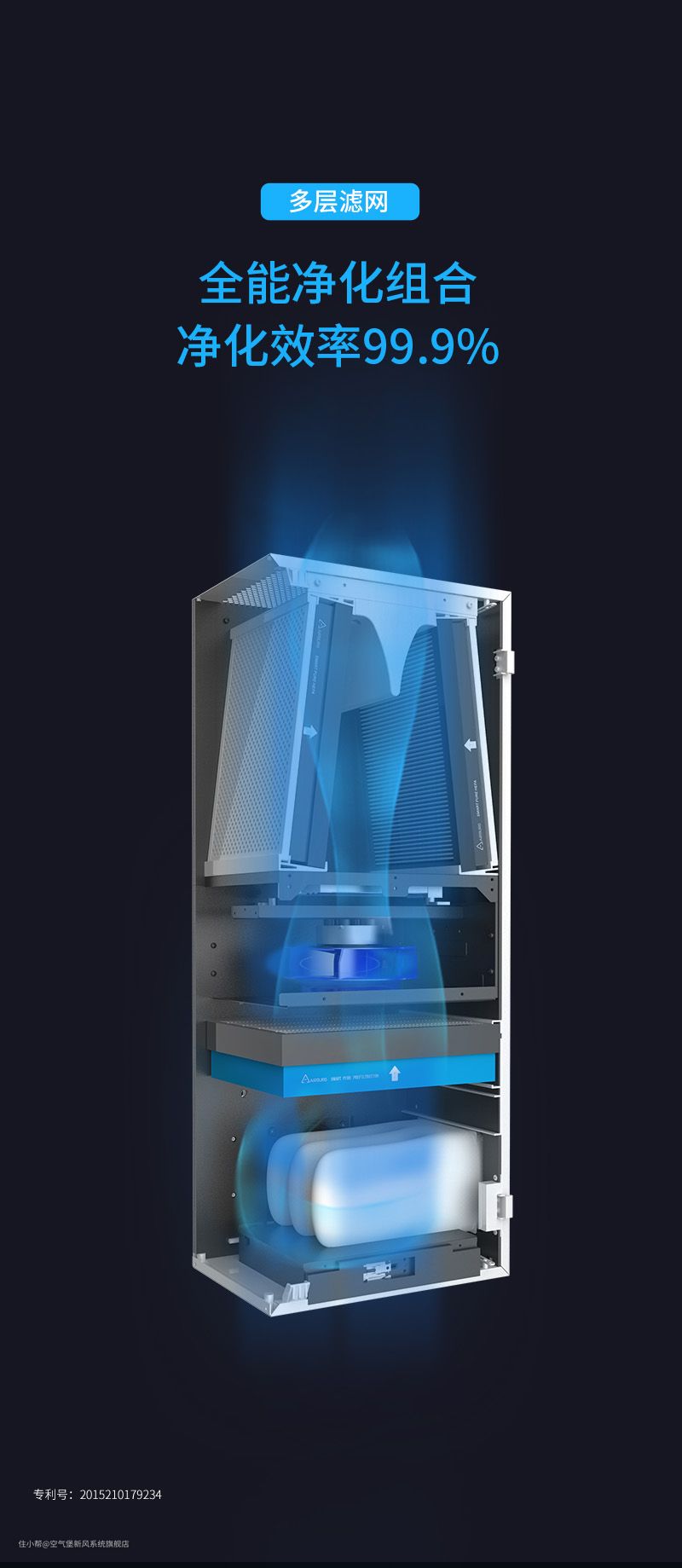 选用HEPA H13级别的高效滤网,保证99.97%以上的净化效率,同时搭配使用中效滤网或初效滤网可以抵挡一部分大颗粒物,分担HEPA滤网的压力,丰富的滤网组合不仅能增加滤网使用寿命,保证持续巅峰净化性能,还能增加其他保护功能,如臭氧净化滤网过滤夏季室外臭氧污染等。反正都是安一台新风,长效全能选手当然更受欢迎。