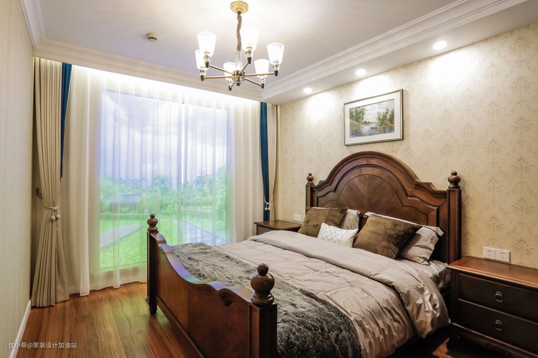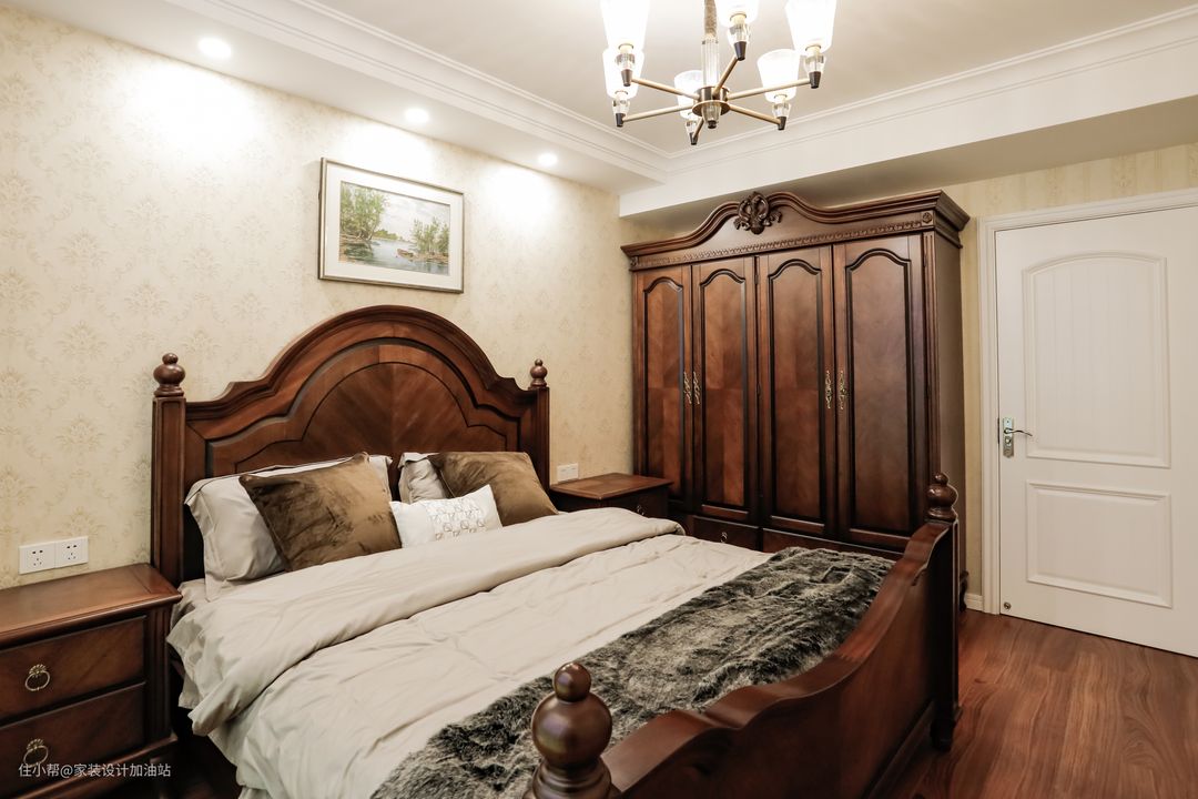 美式风格装修设计:地面全房木地板,墙面全房壁纸,温馨又舒适
