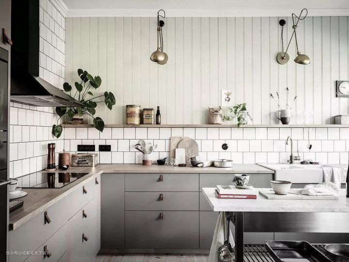 另外,天然石材当中,以大理石最受大家欢迎,这种天然石材百搭,在任何风格的厨房都可以展现出自己的韵味和质感。