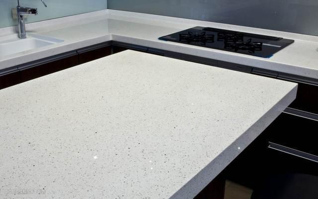 关于石英石台面,这种台面是大家最常用的人造石台面,他颜值爆表,耐磨防高温效果比较好。劣势:石英石台面缝隙大,在防污防水方面效果差,清洁起来麻烦。
