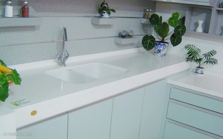 至于亚克力台面,相比石英石台面他可以无缝拼接,清洁方便,在耐磨抗高温方面能力也强。劣势:亚克力台面价格比较昂贵,想要这种台面的话,预算一定要准备充足。