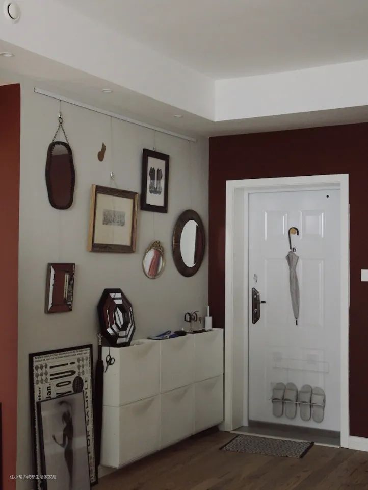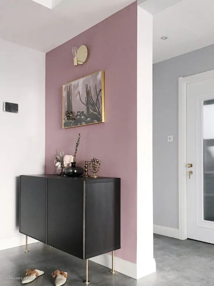 还有一些特殊户型,入户门正对墙面,这时不用着急,直接将收纳柜放在墙的前方就行。