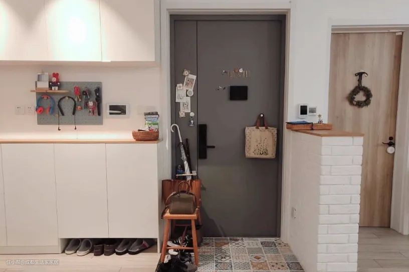 但对于一些户型来说,玄关天生就不存在,开门一切尽收眼底。这个时候,我们就需要“造”一个玄关。