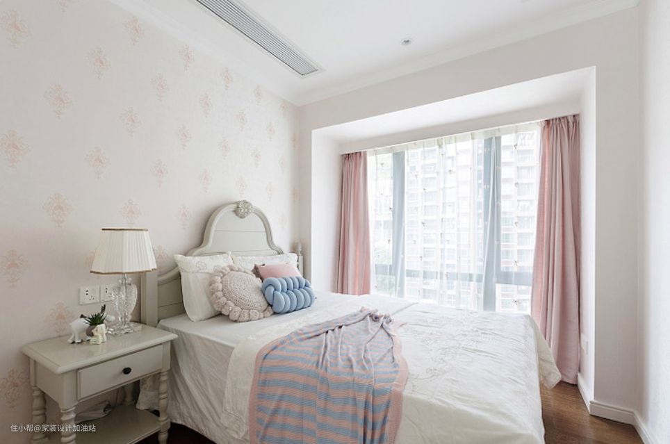 女儿房,只需要点缀粉色的窗帘,整个房间就充满了粉嫩的感觉。如此设计,不仅可以保证当下匹配孩子的审美,未来孩子大了,适当调整软装细节,也不会显得幼稚,考虑周到。