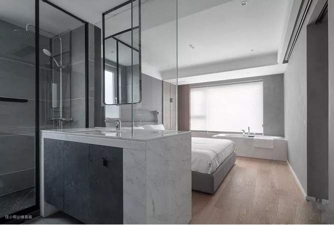 开放式卫生间设计可以节省更多空间,能使空间更具开阔。