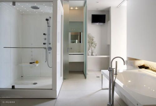 其实开放式卫生间并不是真正意义上开放,而适当私密性非常重要,所以为了保证私密性,在开放式卫生间中,可以采用局部封闭的做法,比如淋浴房和马桶间。