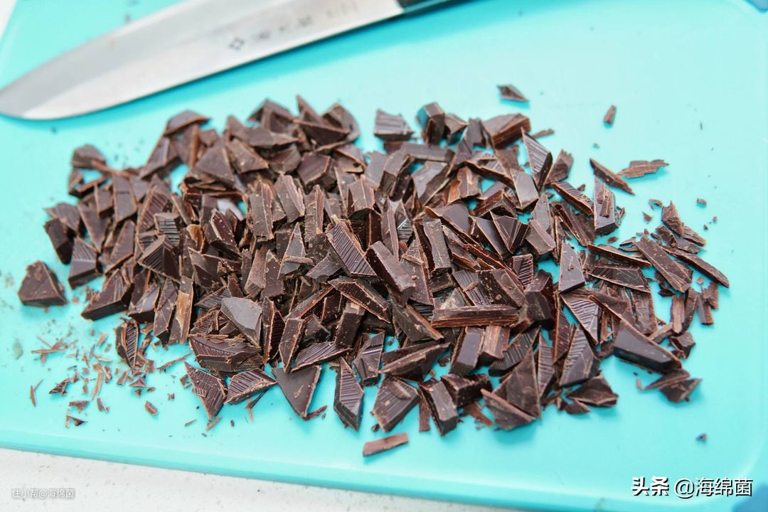 巧克力用刀直接切碎,不用切太小块,形状也无所谓,大小差不多1-2cm就行。