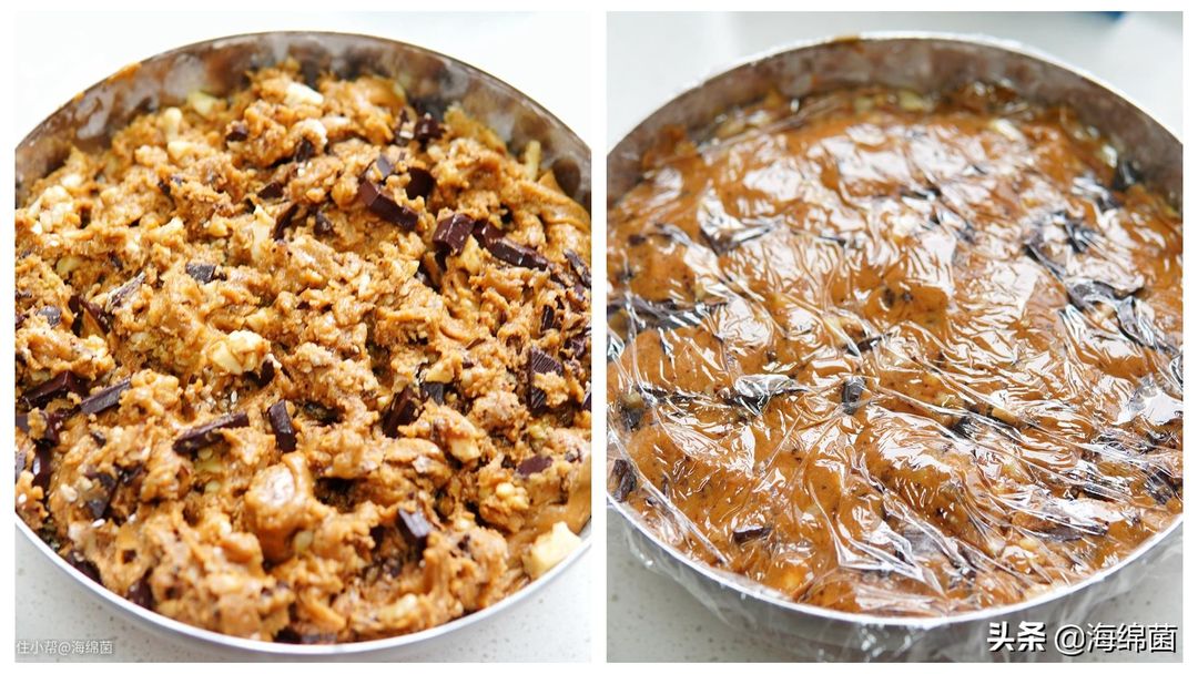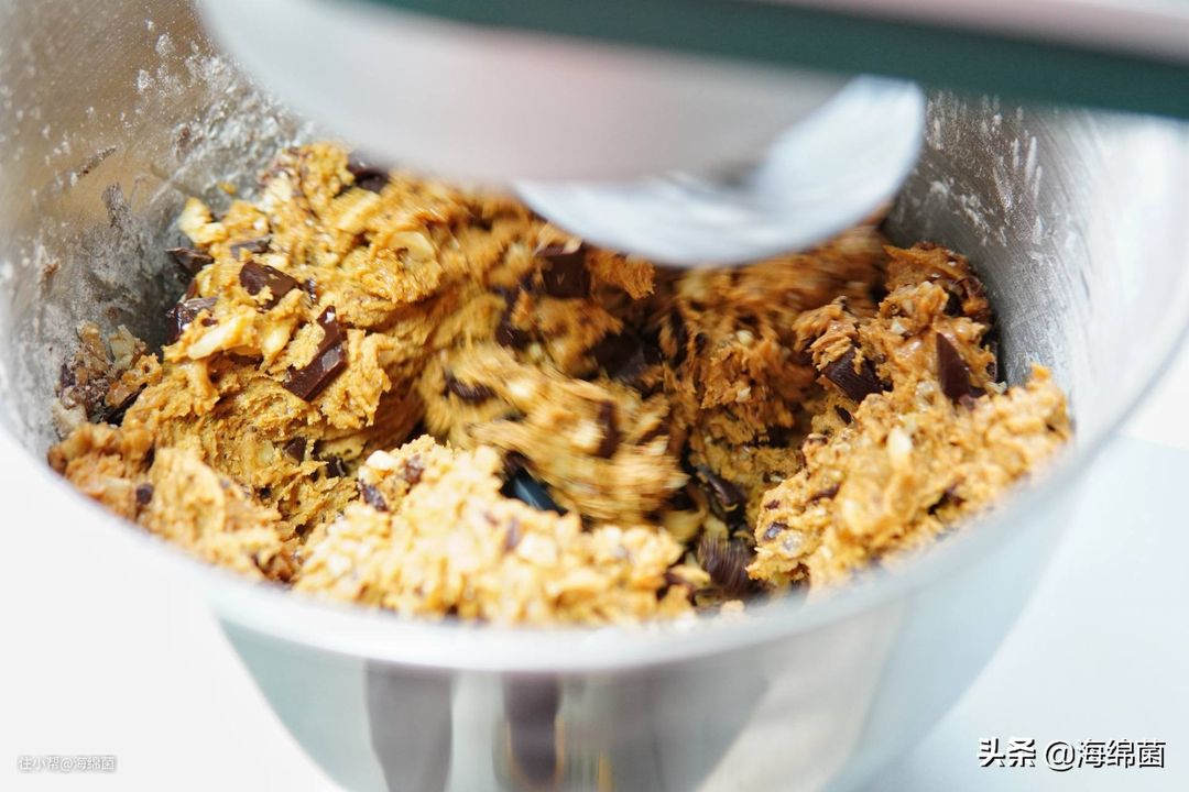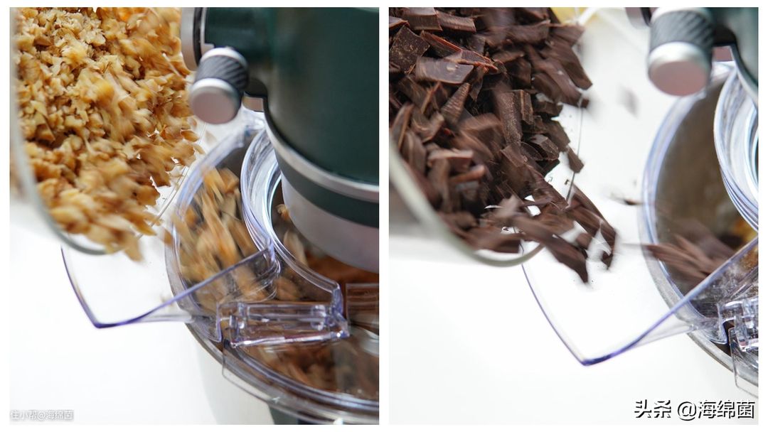 随后加入核桃仁碎和巧克力碎: