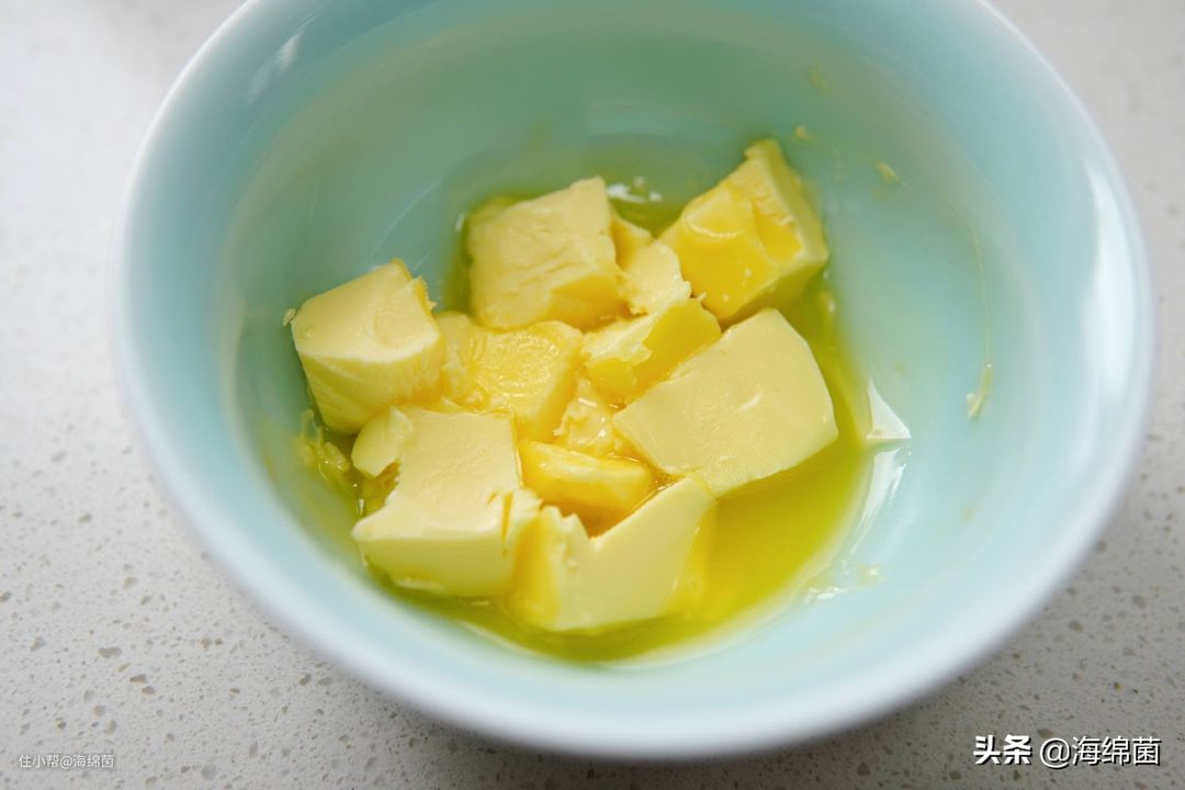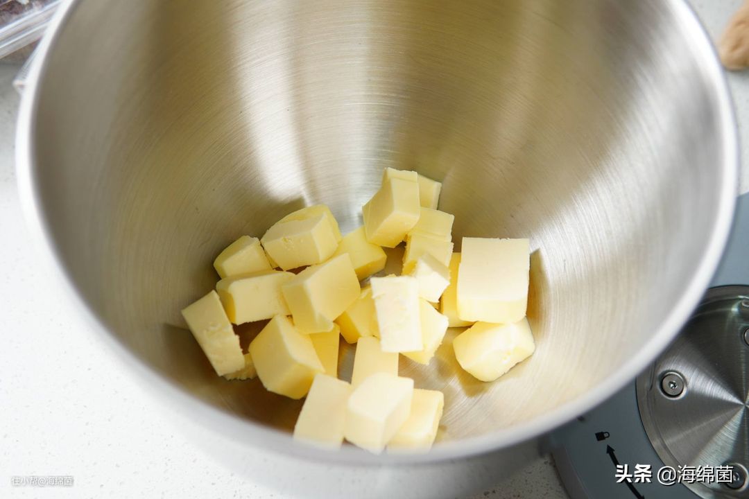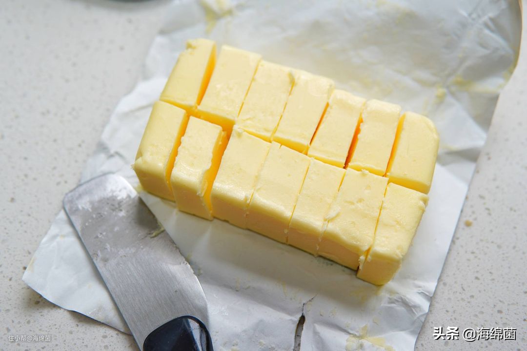 黄油先切片或者切小块,因为后面要融化,所以无需提前放置室温,直接冰箱拿出来切就好了。