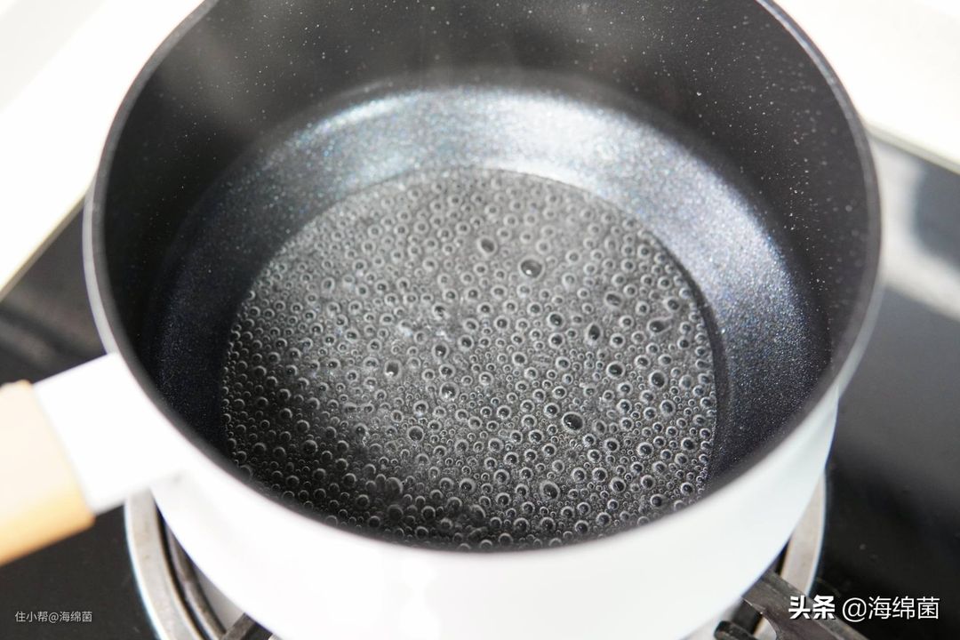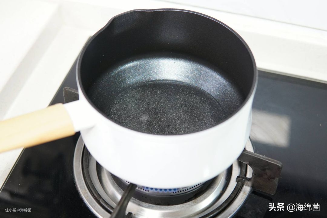 装入小锅小火融化,注意控制火候,融化后关火放置,让其热度自然降低一些。