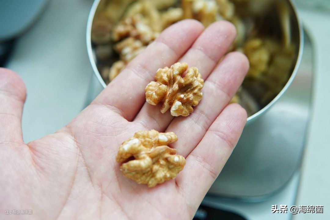 坚果种类可以挑选自己喜欢的,一般可以用核桃,夏威夷果,南瓜籽这种,我用的是生核桃仁,挑选的重点是新鲜,坚果品质不好不但影响口感,如果发霉就会带黄曲霉素,对健康影响还是很大的。