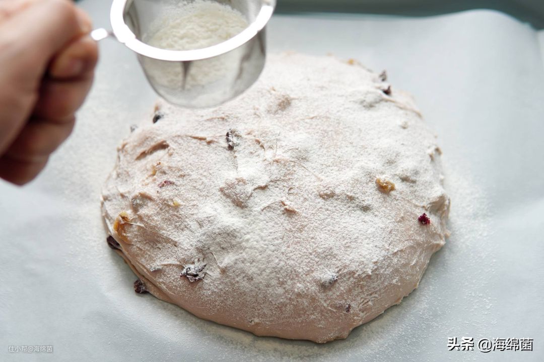 发酵后的面团表面撒上面包粉,并用小刀适当的割包,我没有专门的割包刀片,就用普通刀拉了几下,虽然不够锋利,割包细节不够流畅,但成品反而会有一种粗犷美。