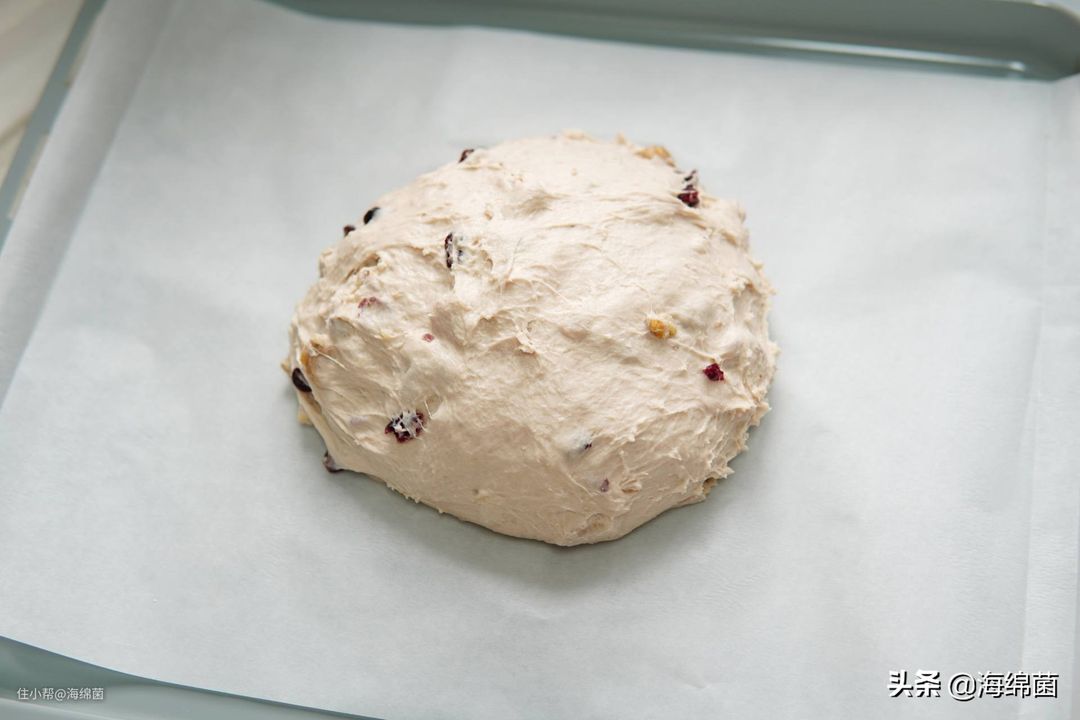 将面团稍微团一下放到烤盘上,因为比较粘所以表面不会很光滑: