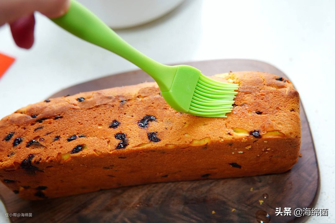 趁热把糖浆刷到蛋糕的表面,每一面都要照顾到,热的时候刷,一下子就能吸收进去。