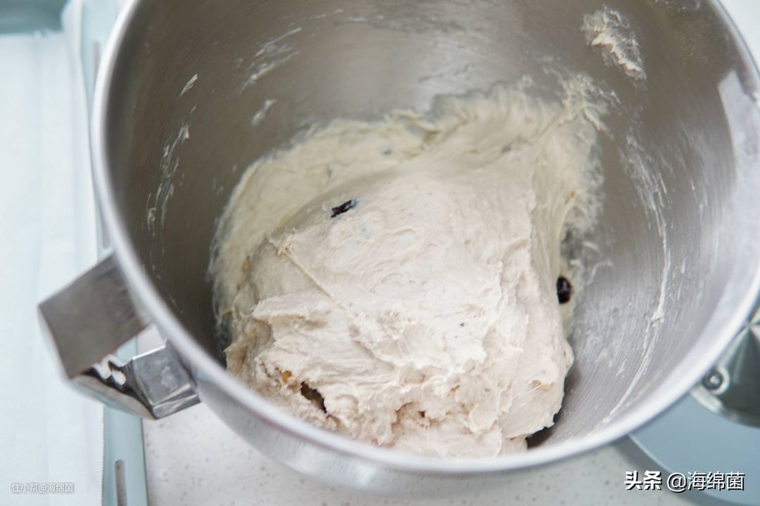 15分钟后面团依旧是比较稀的状态,没有关系,我们将其取出来就好。