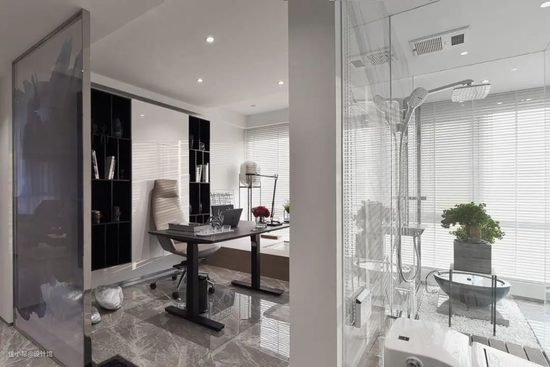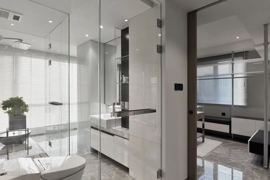 180㎡现代简约,卫生间用玻璃墙?设计太大胆!是否有点奔放?