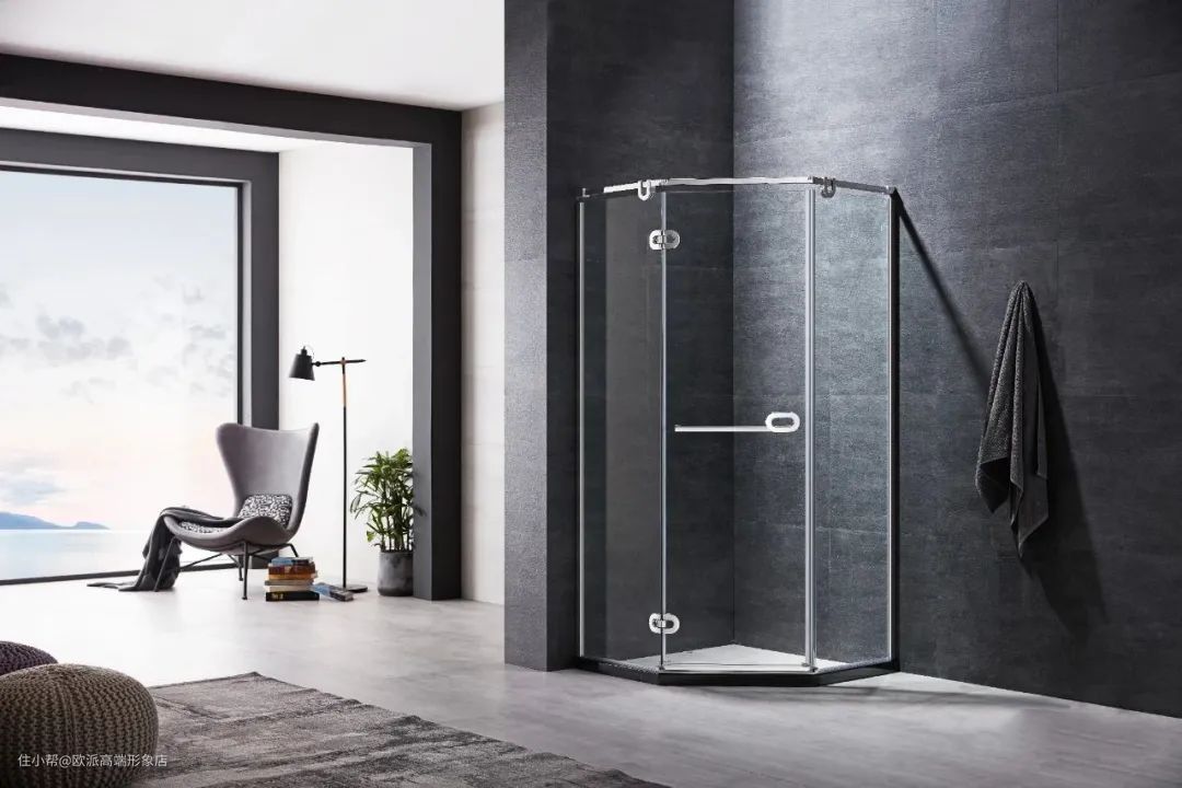 钻石形淋浴房:卫生间面积有限,可以采用钻石形淋浴房,把方形淋浴房的直角切割成钻石形,减少空间占用,让淋浴房外部通道宽敞不少。