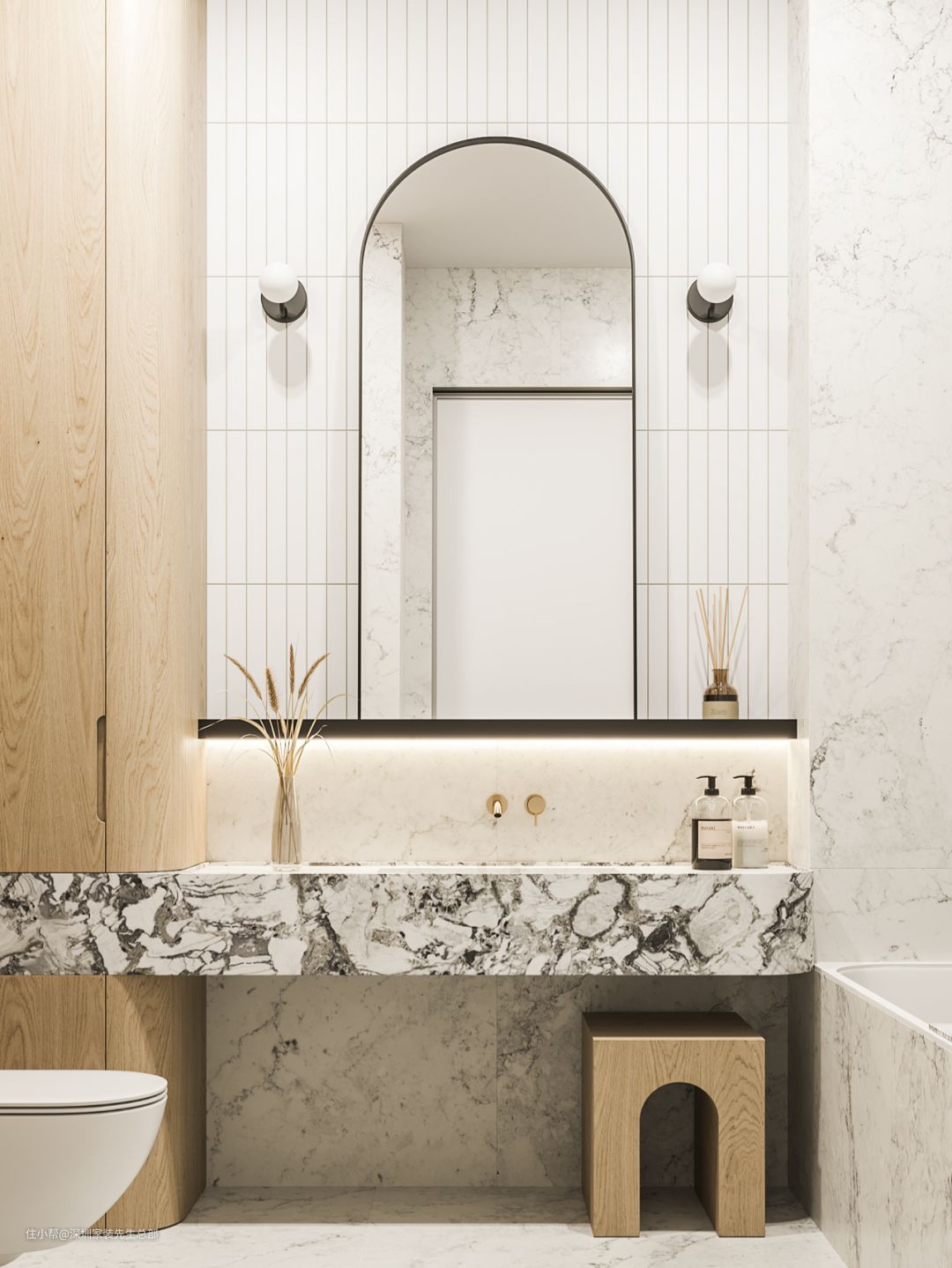 下方拼接拱形大理石饰面,装饰性极强