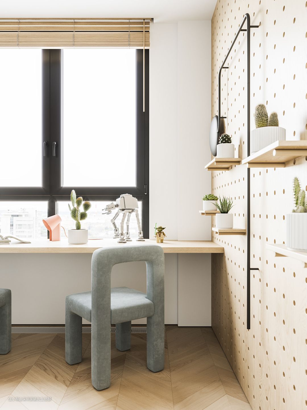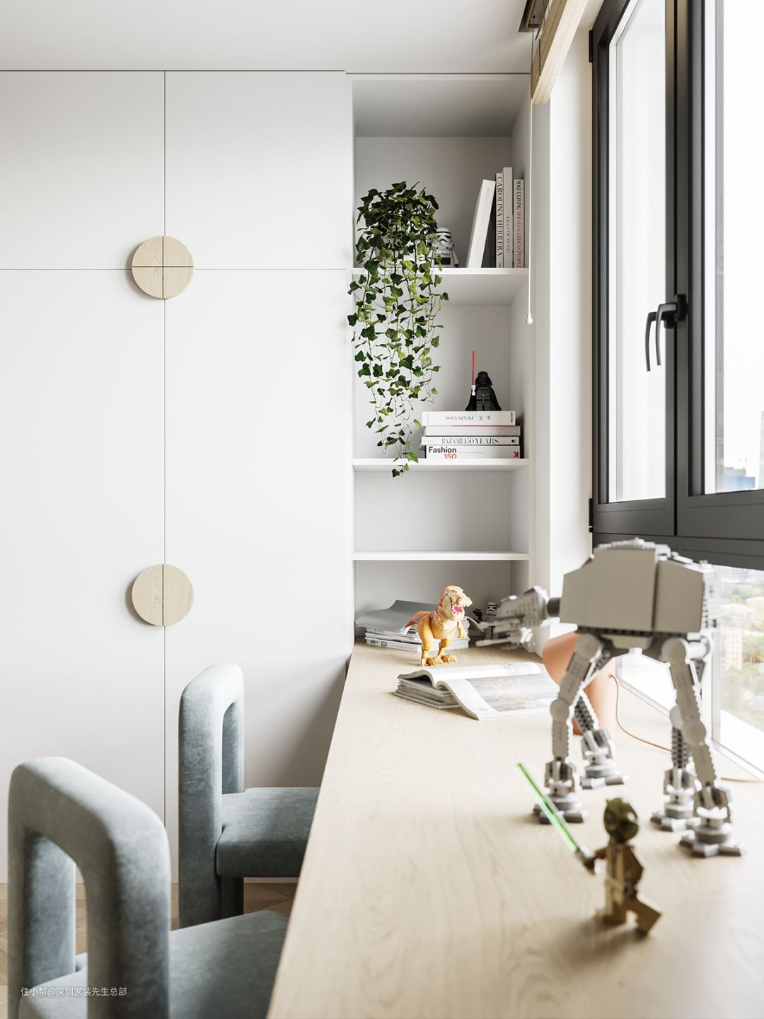 朝向窗户的学习区,阳光充足