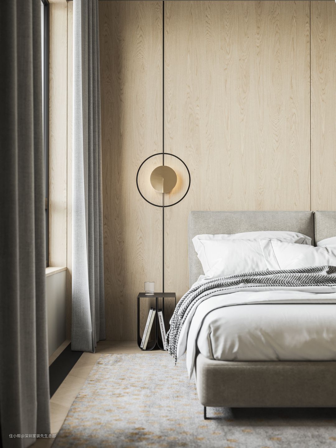 窗帘颜色与暖灰色拼接的墙面一致