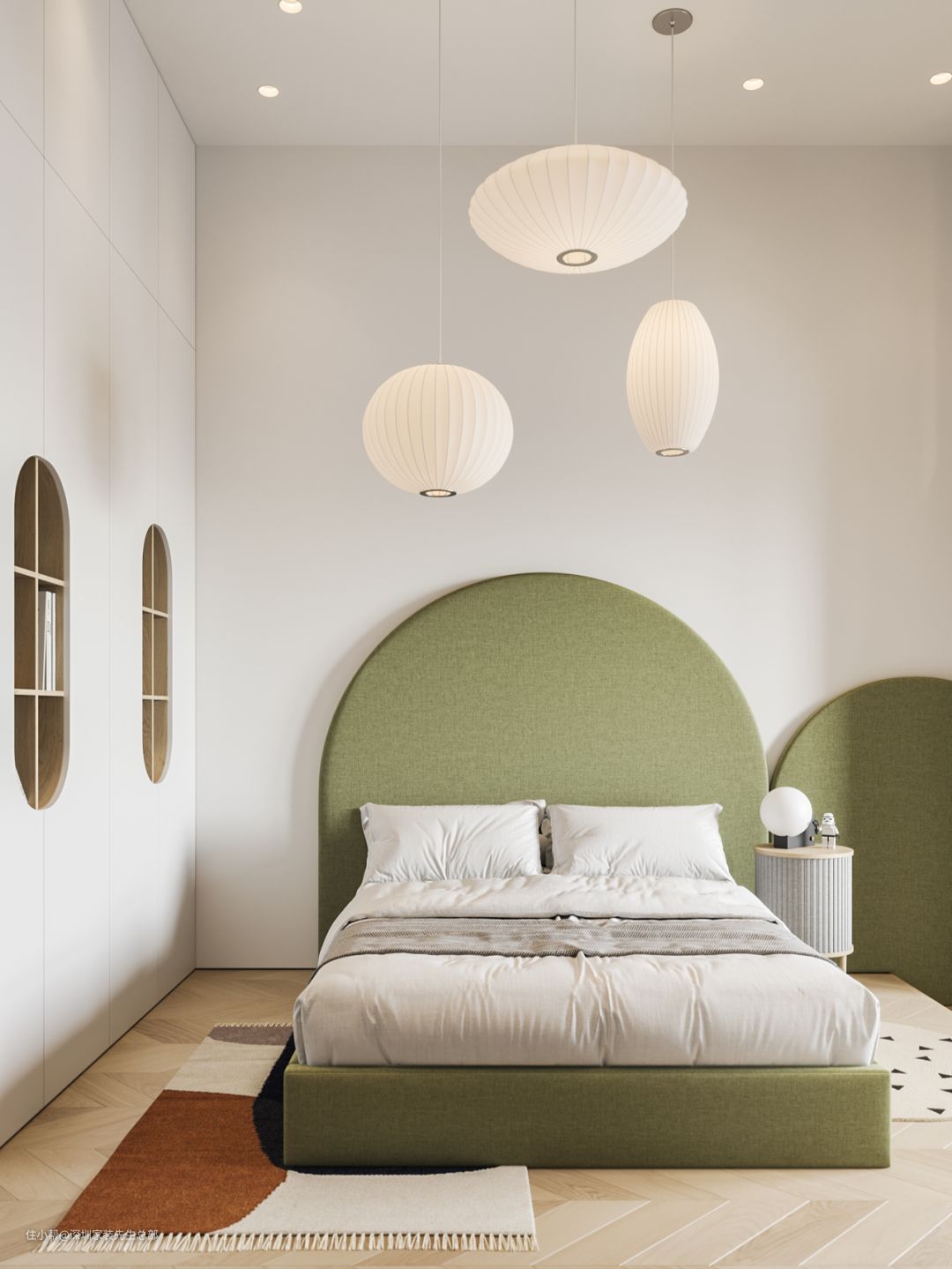 草绿色拱形床头面板活力满满