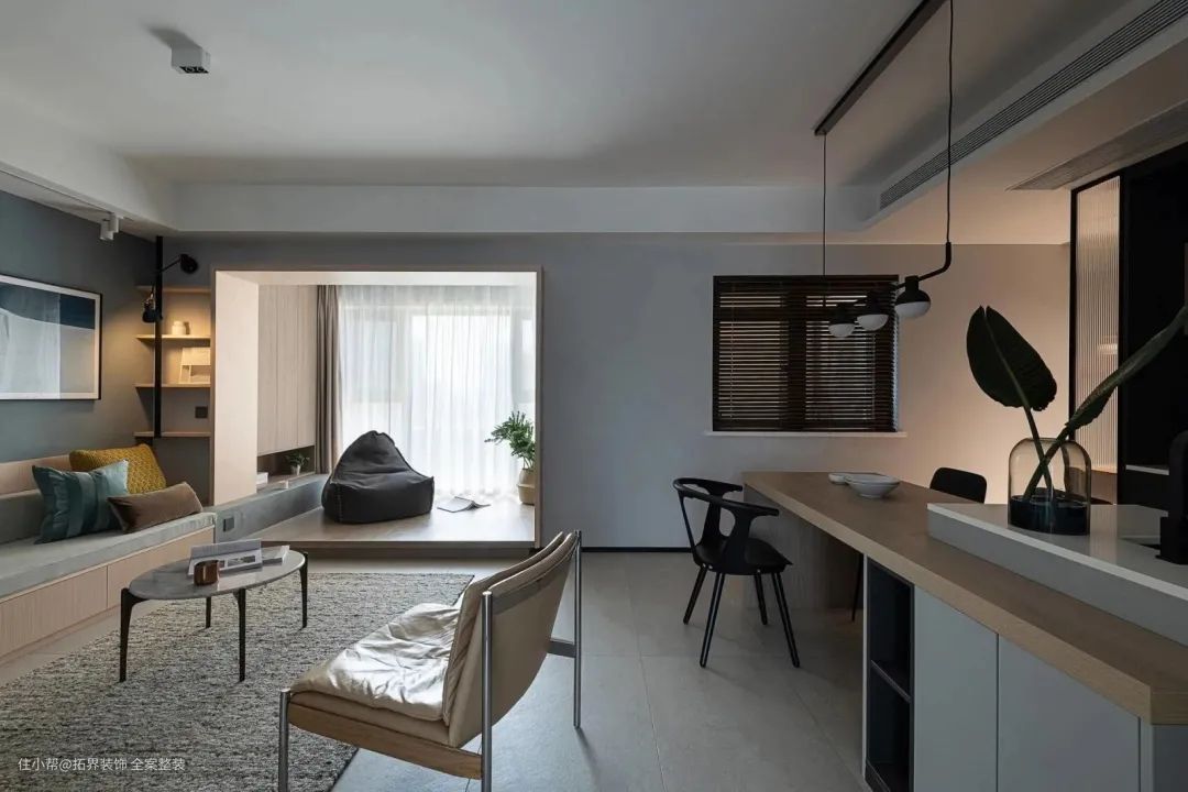 减掉走廊的低利用率的占地,整个空间利用率得到了提高。客餐厅的设计不受空间限制,有了更多的行动空间。