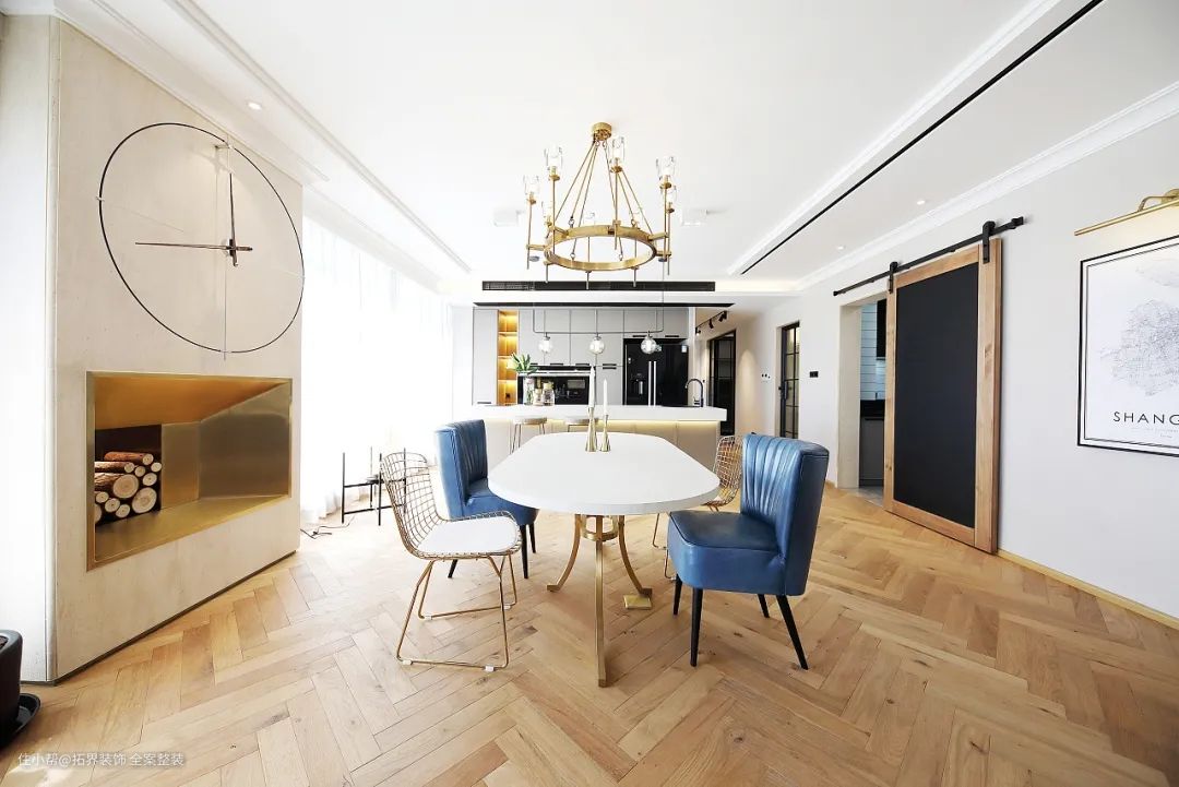 客餐厨这三者放在一起直通的能一眼看到底,会让空间更加宽敞。这里的厨房指的是开放式厨房,如果怕油烟太多的话可以设计一个中厨在封闭区域,而公开的地方就作为西厨。
