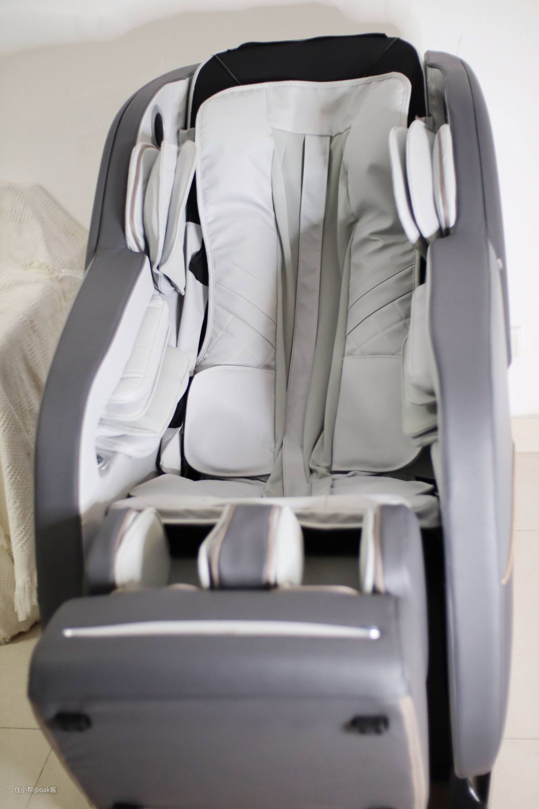 虽然可以预约安装,但是因为这款按摩椅是一体式配送,采用魔术贴贴合各部位,将双层头垫和坐垫放置好就OK了。基本零难度,对比市售其他品牌而言体验可以说相当不错!