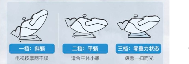 按摩椅的零重力模式非常舒服。原理就是模拟太空舱零重力127°(±7°)仰角,让人的身体重心放在臀部,彻底放松缓解压力。我妈就很喜欢这个模式哦。